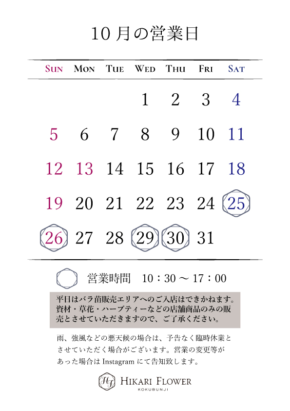 10月の営業について