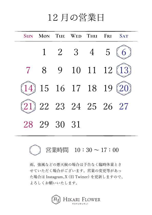 ※12月7日(日)はイベント開催のため、おやすみです。